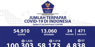 TERUPDATE – Perkembangan Penanganan Covid-19 di Indonesia per 28 Juli 2020