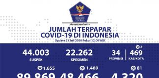 TERUPDATE – Perkembangan Penanganan Covid-19 di Indonesia per 21 Juli 2020