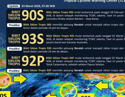 BMKG Deteksi Tiga Bibit Siklon, Waspada Hujan Lebat dan Gelombang Tinggi