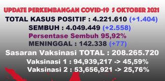 Breaking News COVID-19 di Indonesia 5 Oktober 2021, Kasus Positif...