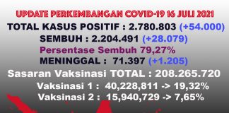 Breaking News COVID-19 di Indonesia 16 Juli 2021, Kasus Positif Baru...