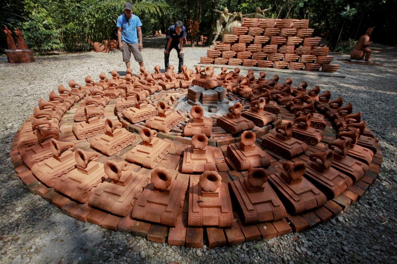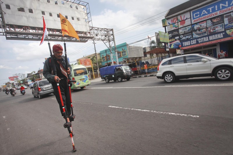 Warga Yogyakarta Menggunakan Egrang Menuju Jakarta
