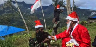 TNI Yonif 323/Buaya Putih Berbagi Kebahagiaan Natal di Perbatasan Papua