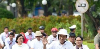 Ditemani Sejumlah Menteri, Presiden Tinjau Alun-alun Kota Semarang Dengan Bersepeda